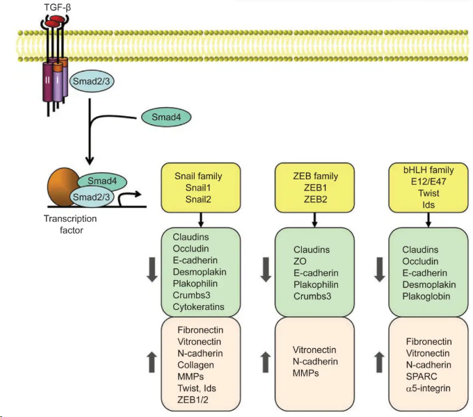 TGF-β is one of the main inducers of EMT, regulating EMT through both Smad-dependent and Smad-independent pathways.