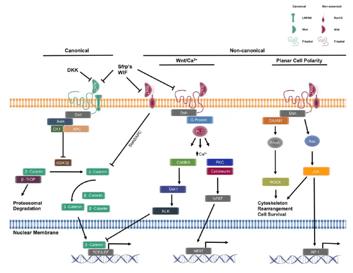 The Wnt signaling pathway plays an important role in EMT, which can be divided into canonical and non-canonical pathways.