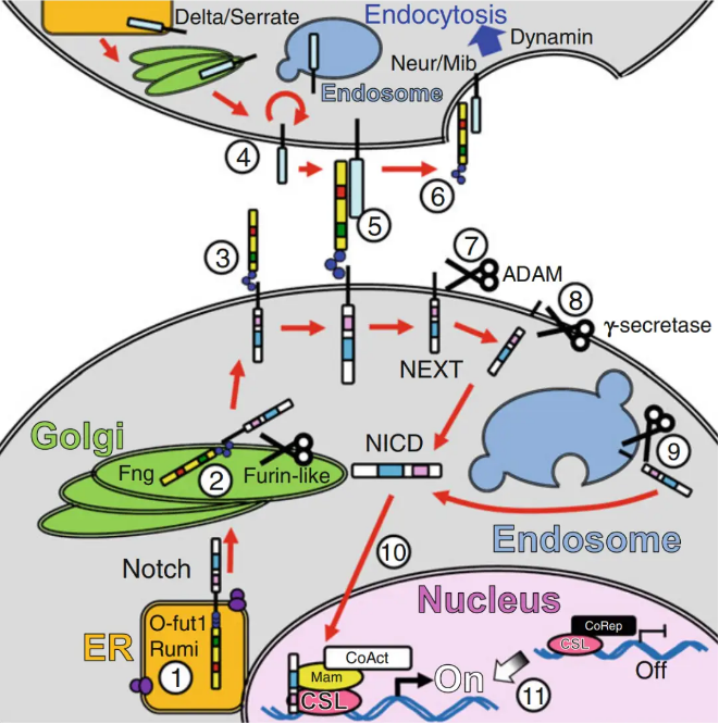 The Notch signaling pathway promotes EMT by regulating downstream transcription factors (such as Snail and Twist).