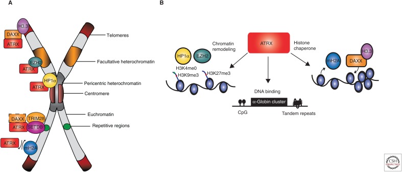 - Ritchie K, Seah C, Moulin J, et,al. Loss of ATRX leads to chromosome cohesion and congression defects. J Cell Biol. 2008 Jan 28;180(2):315-24.[PMID: 18227278].